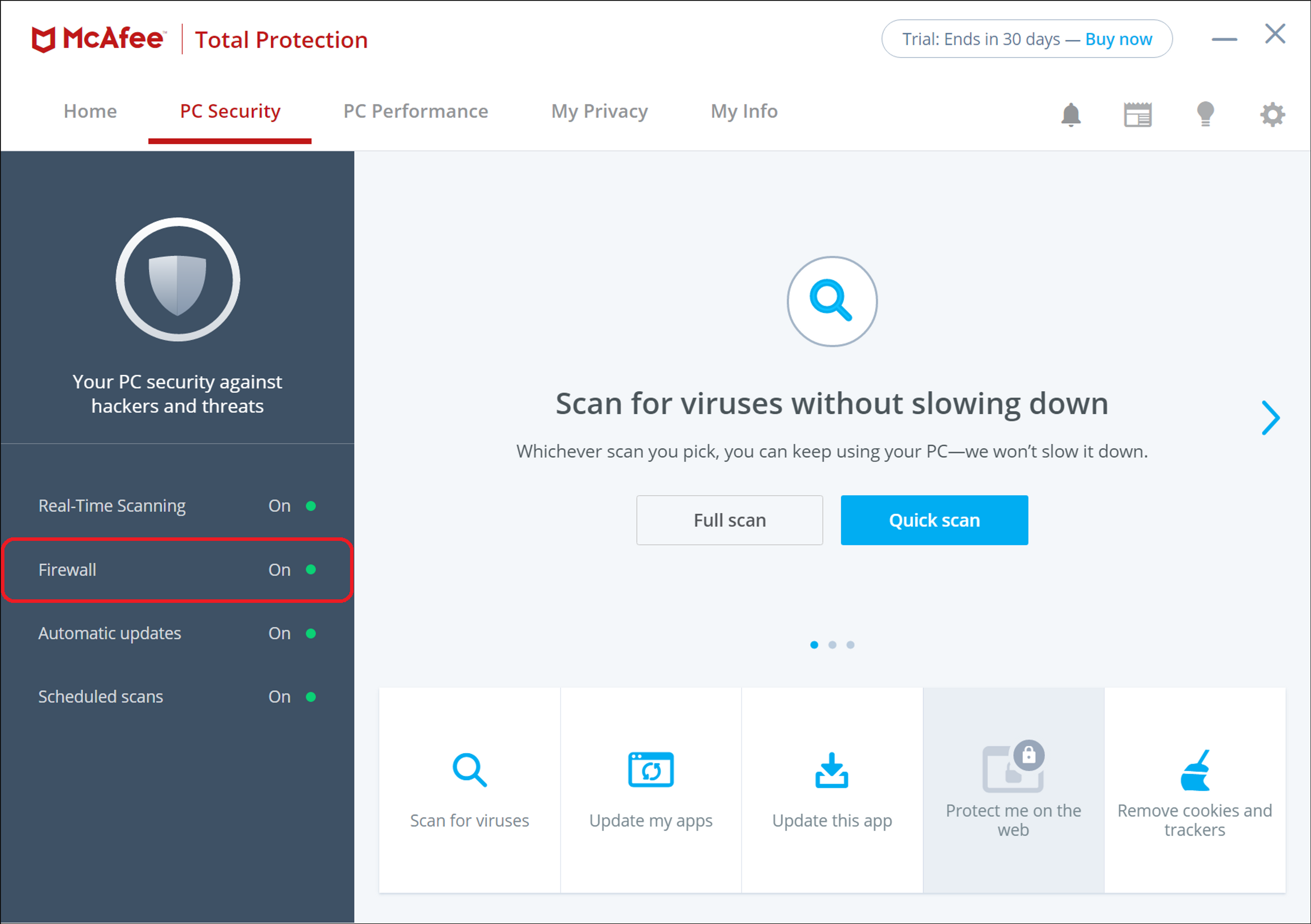 1. Open McAfee Total Protection by double clicking the McAfee logo.