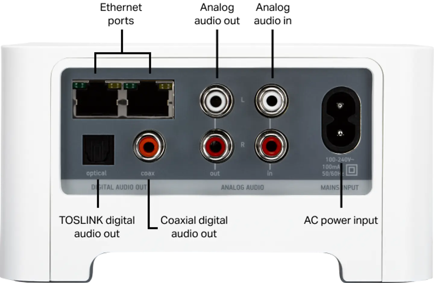 Connect has a set of analog RCA inputs that allow you to connect devices like turntables or CD players. Simply connect the RCA cable from your external audio device to Connect’s RCA inputs labeled IN. To learn more, check our article for using line-in on Sonos.