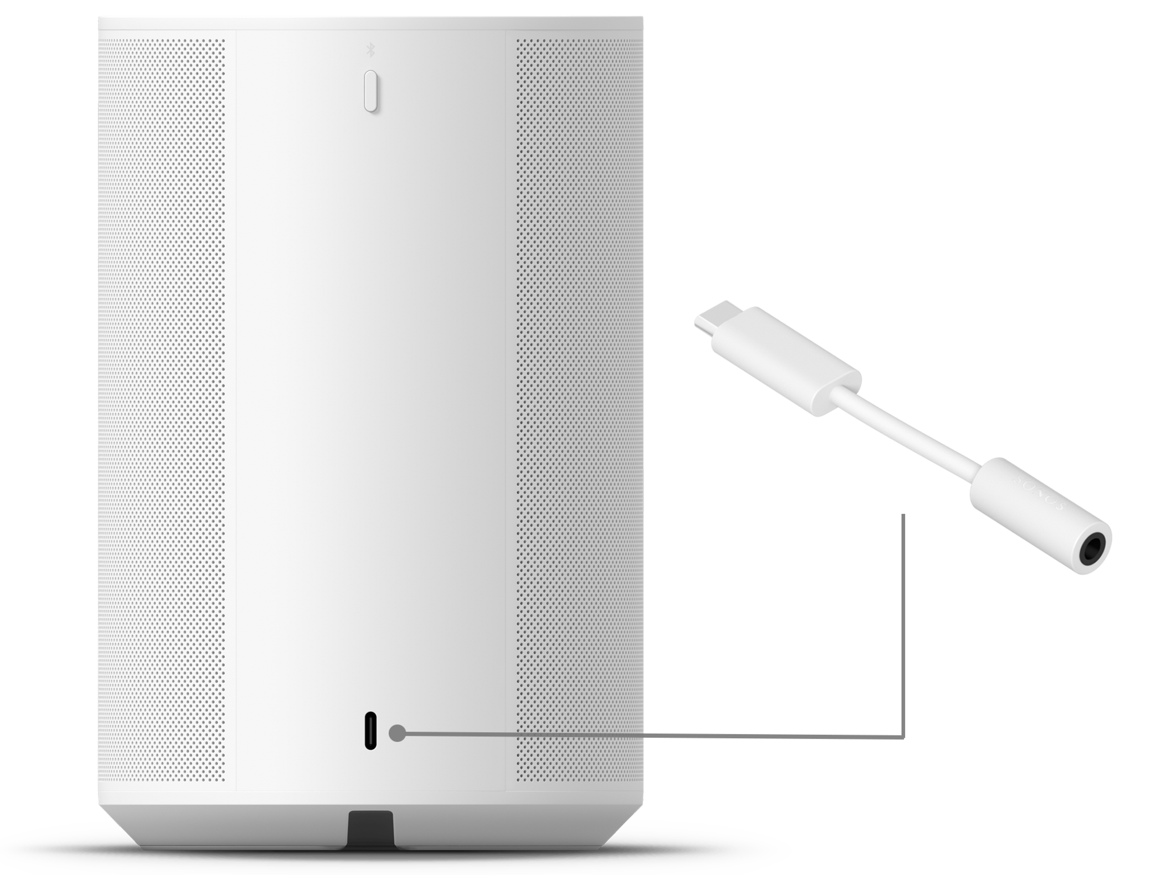 - Plug the Sonos Line-In Adapter into the USB-C port on the back of your Era 100 SL.