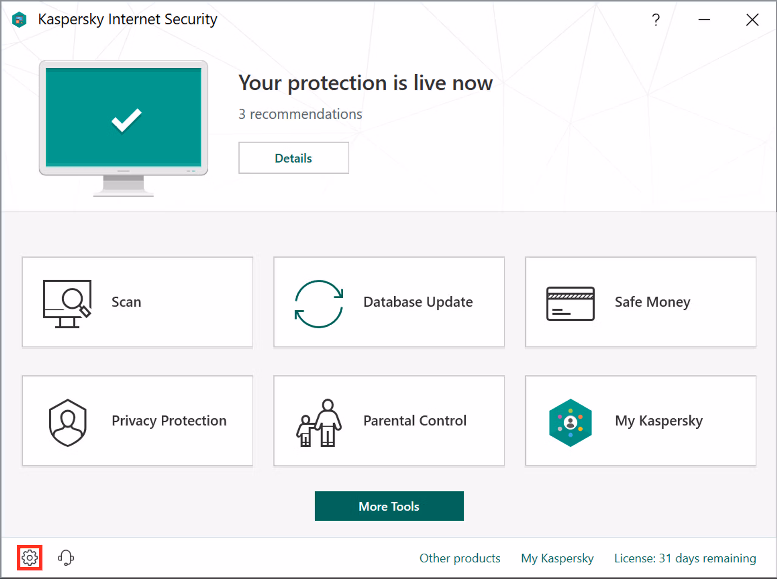 1. Open Kaspersky Internet/Total Security by double clicking the Kaspersky logo.