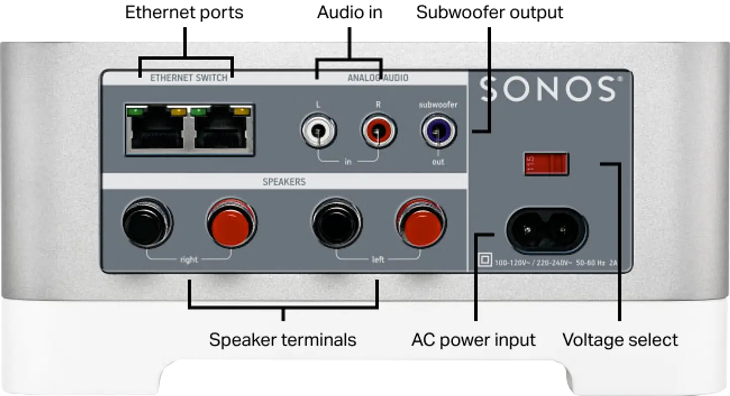 Si vas a conectar más de dos altavoces, consulta nuestro artículo sobre cómo conectar cuatro altavoces a Amp o Connect:Amp para obtener instrucciones específicas.